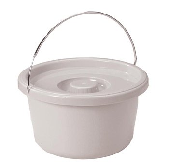 Commode Bucket Features a metal handle and cover. 7.5 Quart.